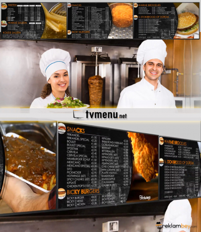 Döner kebap / pizza ve diğer yemek sektöründe hizmet veren işletmelere yönelik televizyon üzerinde çalışan animasyonlu bir digital menü şeklidir.