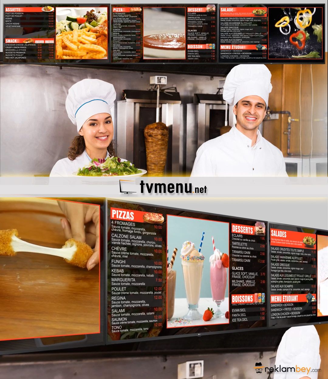 Döner kebap / pizza ve diğer yemek sektöründe hizmet veren işletmelere yönelik televizyon üzerinde çalışan animasyonlu bir digital menü şeklidir.